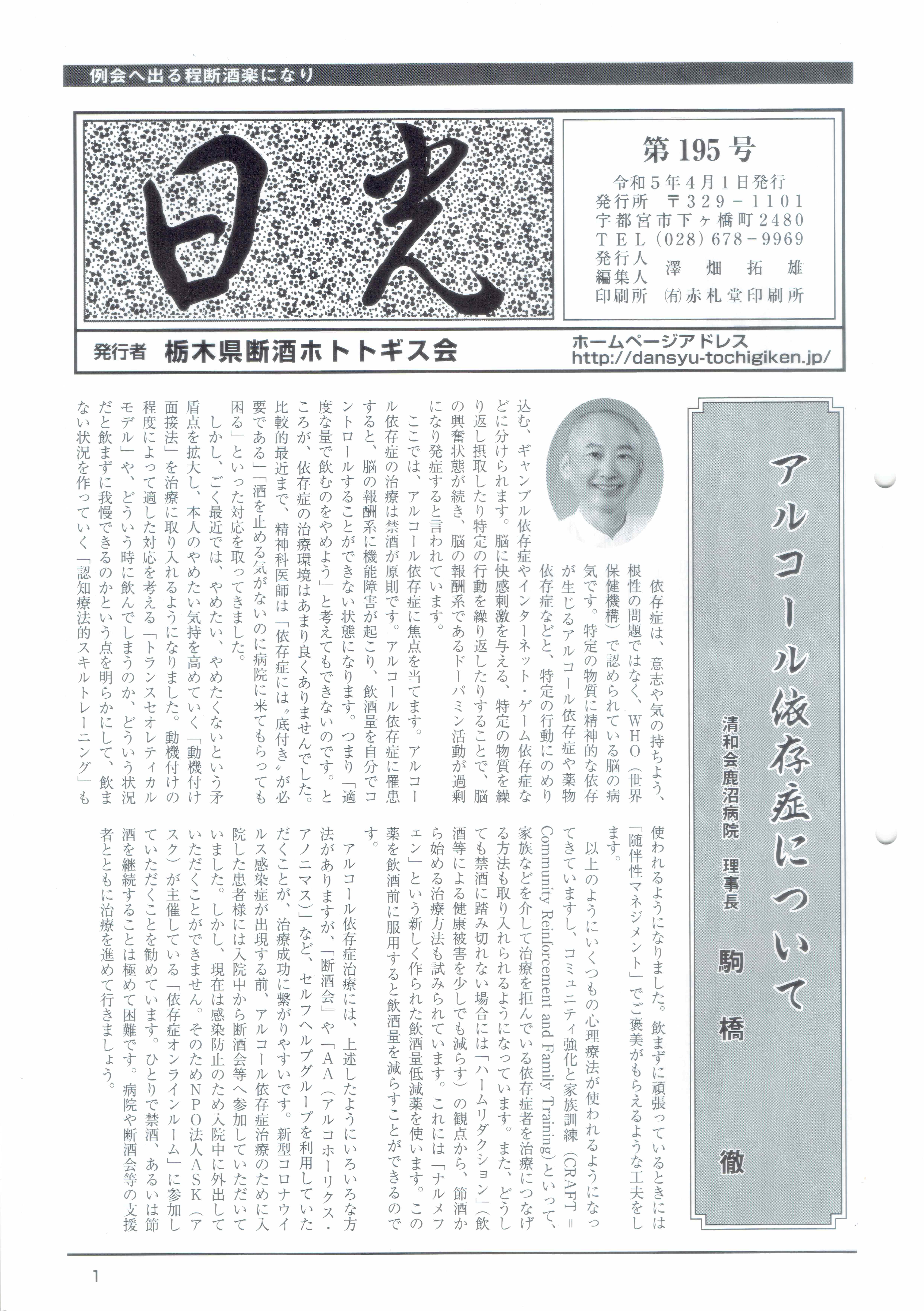 鹿沼病院 駒橋理事長よりいただいた御寄稿で禁酒となっていますが、