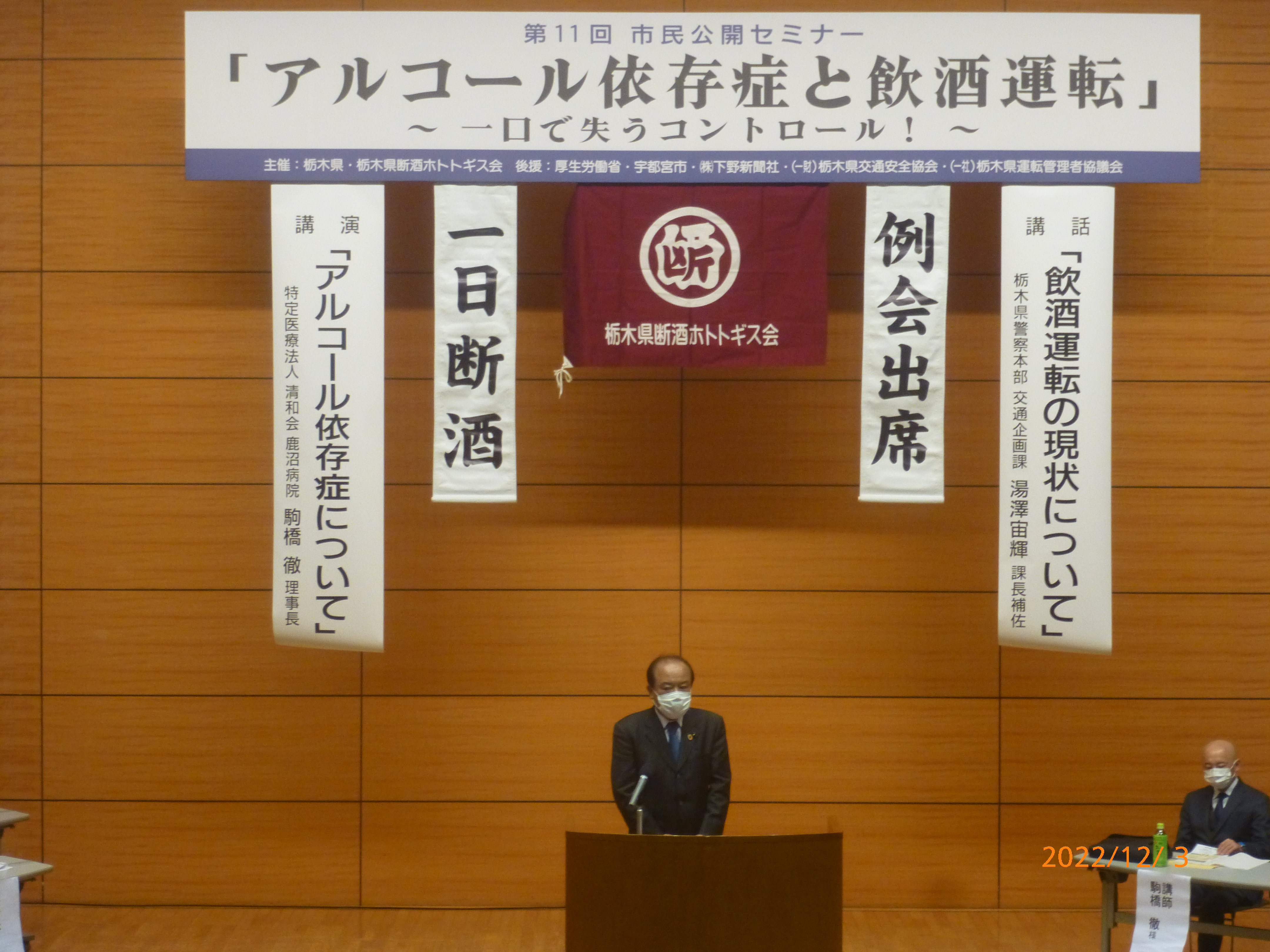 | 特定医療法人 鹿沼病院 駒橋 徹 院長 『アルコール依存症について』 御講演の様子 |
